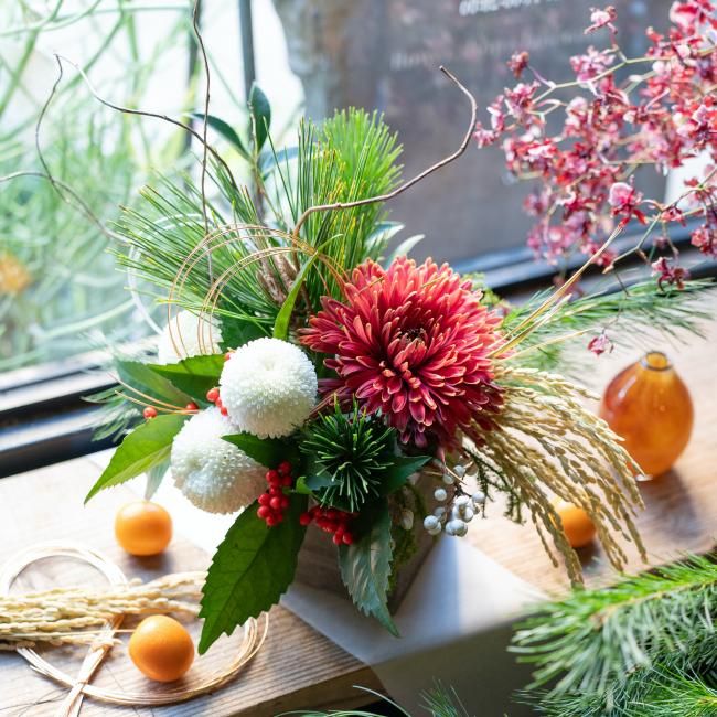 新たな一年を迎えるお正月を、明るく彩るアレンジメントは、